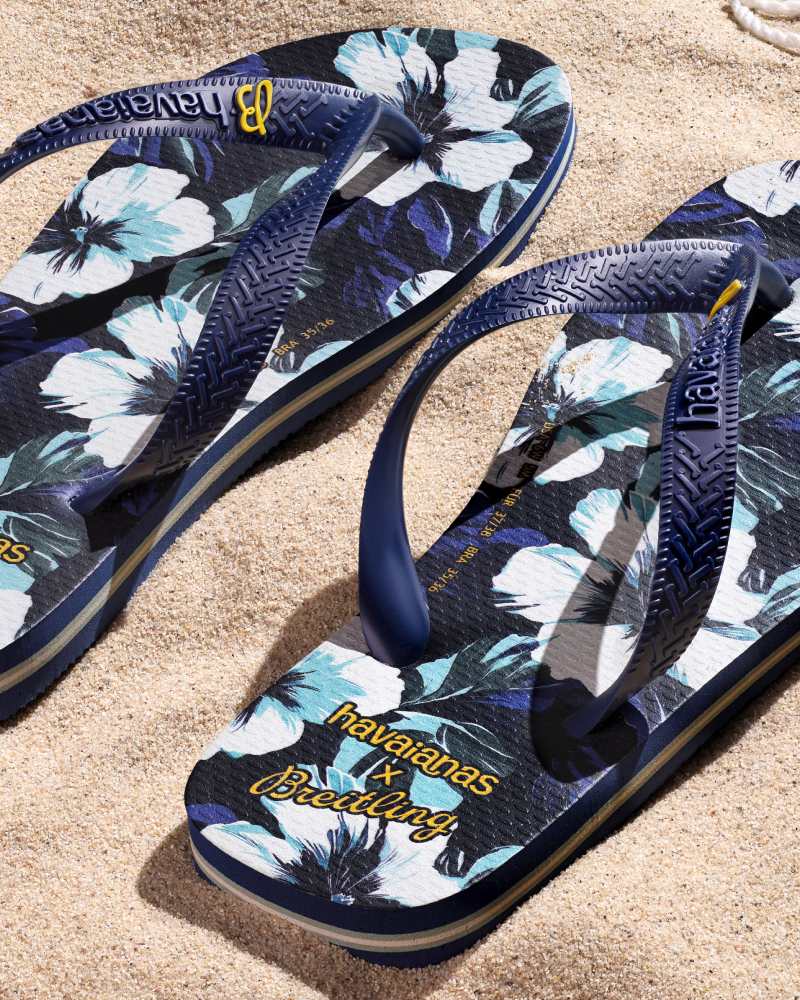 为进一步传递超级海洋系列的海滩精神,Breitling 还携手巴西鞋履品牌 Havaianas 推出联名拖鞋,饰以夏威夷花卉图案,让夏日休闲风情随步而至。这些联名产品将在全球17家百年灵装备区发售,专为追求精致生活方式的爱好者提供更多元化的选择。