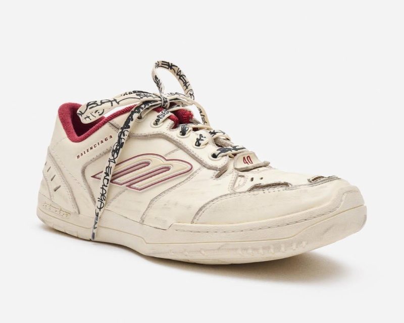 Balenciaga 在 2025 秋冬系列带来全新 Hamptons Sneaker,一改过往厚重浮夸的风格,转以更为低调的轮廓呈现。创意总监 Demna 将毛边设计、不对称细节、做旧刮痕与涂鸦鞋带元素融入其中,采用拼接皮革鞋面和传统鞋底结构,更贴近日常穿搭需求,既保持了个性鲜明的风格,也更易融入日常生活,体现品牌回归简约的态度。