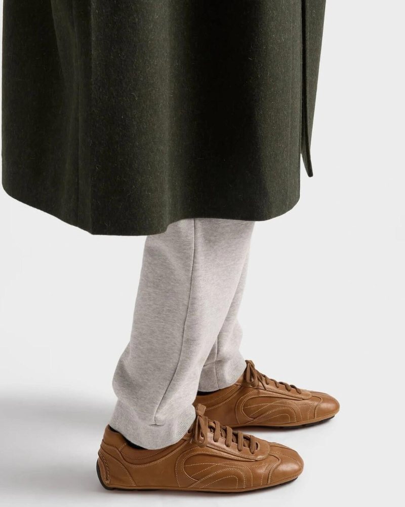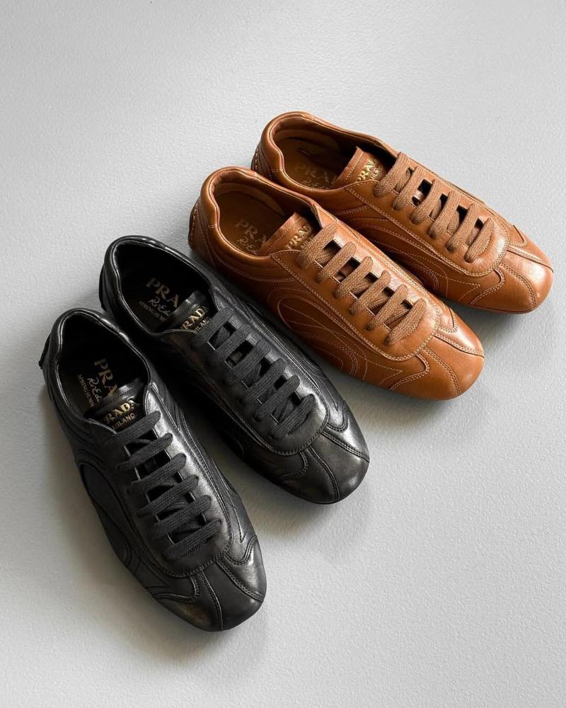 薄底潮流卷土重来,Prada 顺势复刻 20 年前的经典鞋款 Montecarlo。重新演绎的全新皮革版,线条更加精致洗练,摒弃原有的运动元素,取而代之以现代简约的轮廓与细节处理,精准把握了复古与现代交织的时尚脉搏。这款鞋同时兼顾舒适性与优雅气质,让它无论搭配正式或休闲场合,都能呈现恰到好处的高级感。