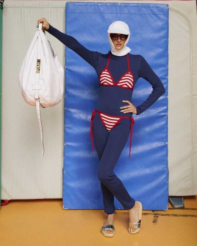 MOSCHINO 次的时尚冒险,不仅穿梭于不同场景,更打破了传统时尚秀的概念限制,日常与假期、现实与幻想融为一体。每一幕,都如同一部视觉大片,展示出品牌对于日常生活细节与时尚场景的独特理解。