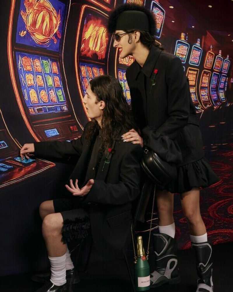 旅程自炫目的拉斯维加斯开始,明亮的霓虹灯牌与深夜狂欢场景为灵感,塑造出系列服装的强烈视觉冲击感。超现实感的运动套装、细腻而夸张的剪裁线条,让每个穿梭在灯红酒绿中的 MOSCHINO 男女主角,都成为镜头下最耀眼的明星。