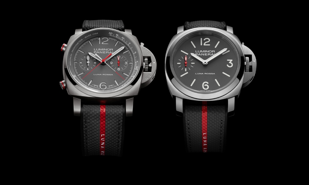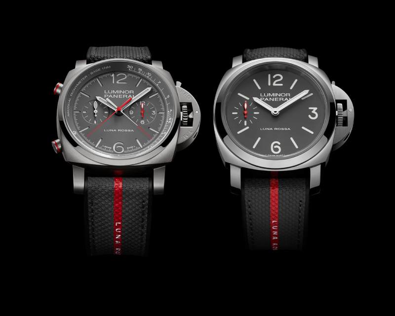 Panerai 与 Luna Rossa 第三度携手美洲杯,带来 Luminor Chrono Flyback Luna Rossa PAM01654 与 Luminor Luna Rossa PAM01653 两款腕表。两款腕表以标志性的灰色哑光表盘和鲜明的红色细节,凸显品牌与帆船队的专属美学,时尚与功能兼具,耀目而生。