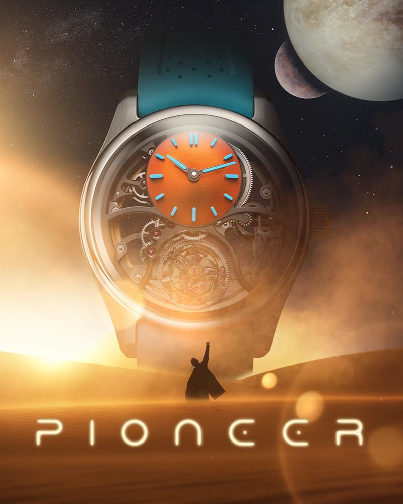 设计师口中的禁忌 —— 对比色。在 H. Moser & Cie. 看来却是最值得玩味的舞台。今年夏天,品牌再度放胆把暖橙与冷调绿松石两大撞色组合,并一次释出三款 Pioneer Spiced Aqua 系列:Pioneer Cylindrical Tourbillon Skeleton Spiced Aqua、Pioneer Tourbillon Spiced Aqua,以及 Pioneer Centre Seconds Spiced Aqua。