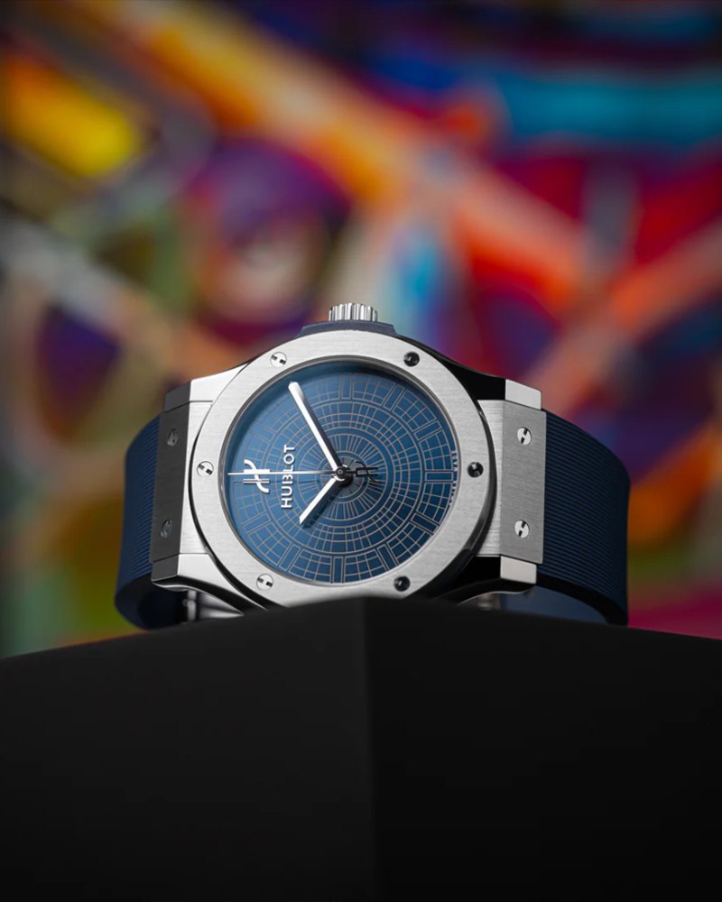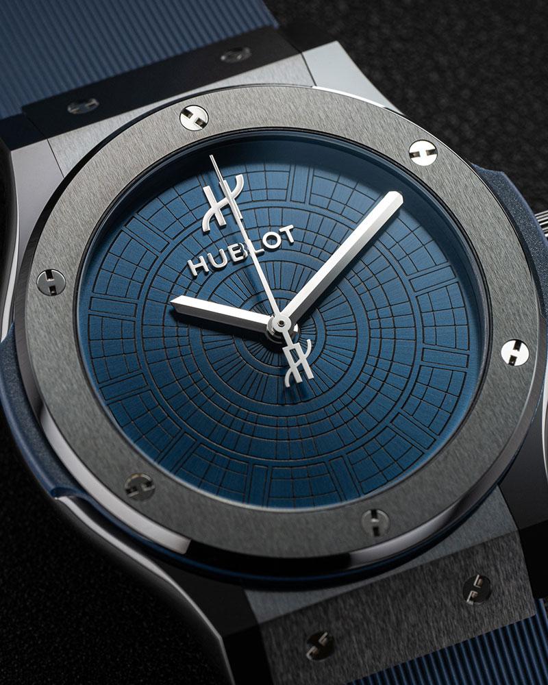 而在融合设计理念上独树一帜的 HUBLOT,则携手意大利顶级腕表零售商 Pisa 1940,推出了 Classic Fusion Boutique Pisa 1940 特别版腕表。限量 25 枚的腕表,将米兰地标 Galleria Vittorio Emanuele II 拱廊玻璃穹顶的华美结构巧妙呈现于蓝色放射纹表盘上,不设日期窗的设计,完整展现了图案的对称之美与和谐统一感。