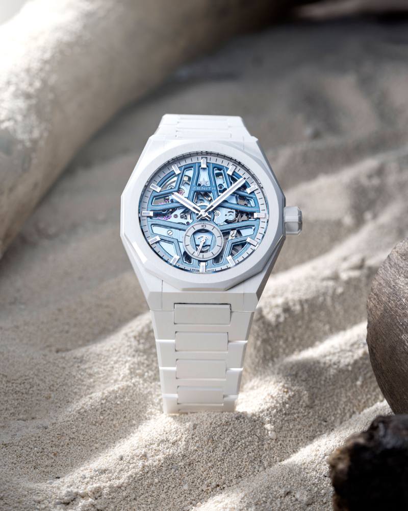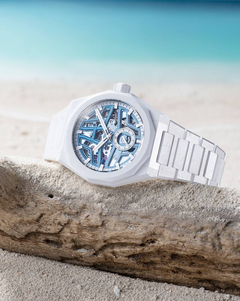 最后,ZENITH 与澳洲钟表媒体 Time+Tide 合作推出的 DEFY Skyline Skeleton White Surfer Ceramic 腕表,则带来了全白陶瓷材质的夏日清爽新风格。41mm 前卫的陶瓷表壳具备 100 米防水性能,不仅耐用,还极具时尚气息。