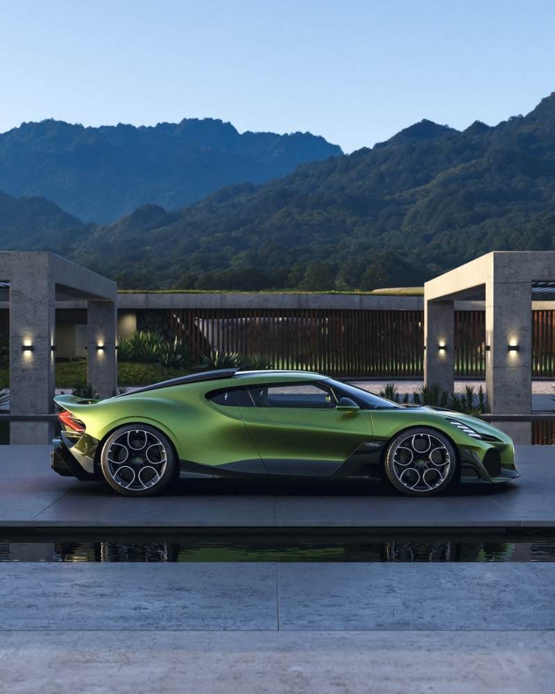 Bugatti 设计总监 Frank Heyl 直言,Brouillard 的比例、曲面与肌理,源自马匹的力量与从容。它本质上是 Mistral 的双门 Coupé 演绎,沿用 Bugatti 家族图腾四涡轮 W16 心脏,最大输出 1600 马力,将机械咆哮转译为纯粹的速度诗学。