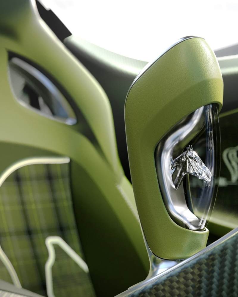 踏入座舱,马术意象被悉心 “编织” 进每一寸触感:为车主独创的马匹纹理织物座椅与门板饰面,细节处处呼应热爱;而排档杆顶部,一枚纯银 Brouillard 马首雕像凝固了奔腾的瞬间,让握杆的刹那成为一场仪式。