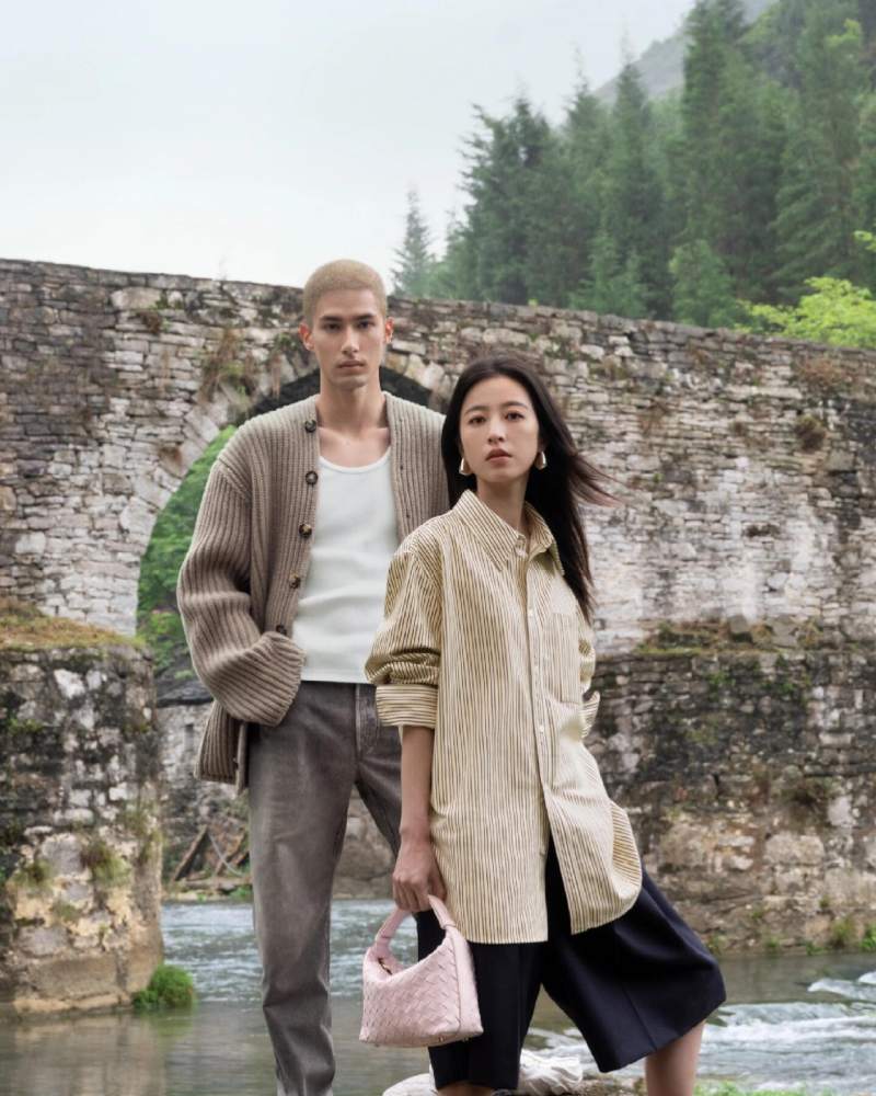 广告片中,三位品牌挚友身着七夕限定系列,穿行在山水间,似旅途中的相遇与交错,带来流动的叙事张力。Bottega Veneta 用细腻的皮革工艺承载爱与连接的意向,让七夕不再只是神话,而是每个人心中真实的相逢时刻。