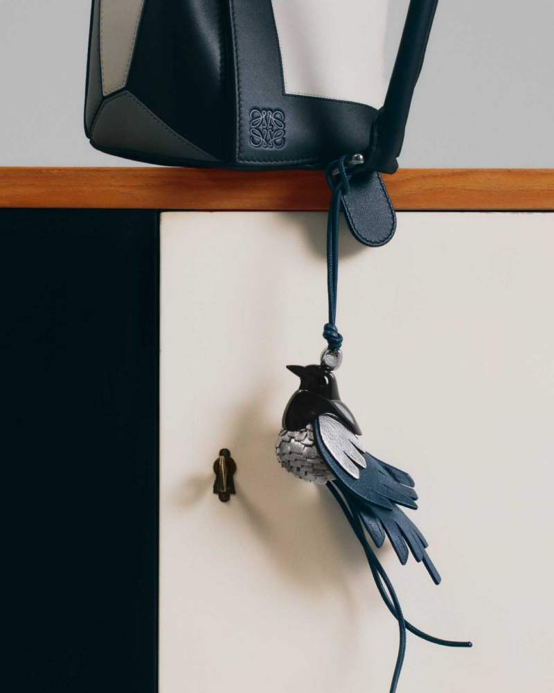 配合短剧推出的七夕限定系列,以深蓝与银色 Ola 包款为焦点,搭配专属的喜鹊挂饰,以及 Puzzle、Flamenco、Amazona 等经典包袋的特别版本。挂饰、骰子与挂锁的设计,既具趣味性,也承载情感寄托,成为连接爱与记忆的微型符号。