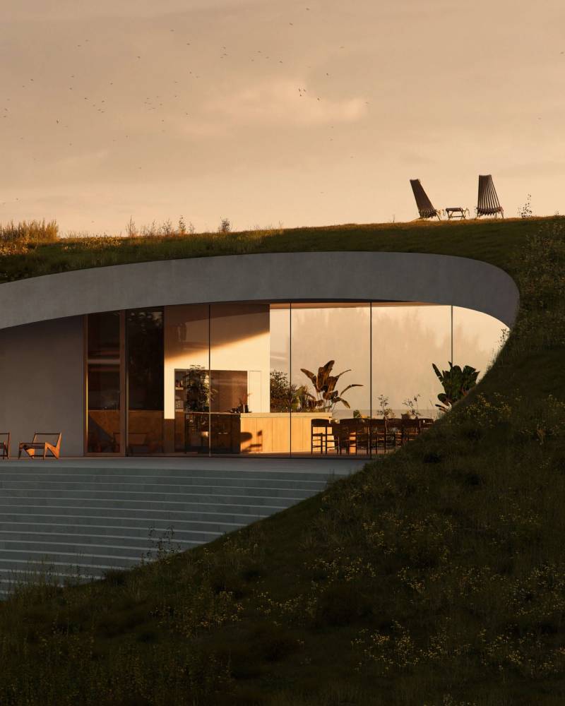 石垣岛海岸(Ishigaki),占地 9,900 平方米的辽阔土地,被赋予了一个与大地共生的名字 —— Earth。这是一栋四卧室独栋别墅,但从空中俯瞰,它更像是一片与大地融洽共生的绿洲。屋顶覆盖草植,与岛屿的地形融为一体,建筑本身几乎消隐于环境之中。藤本壮介的设计哲学在此得以极致体现:建筑不应凌驾于自然之上,而是化身为自然的一部分。