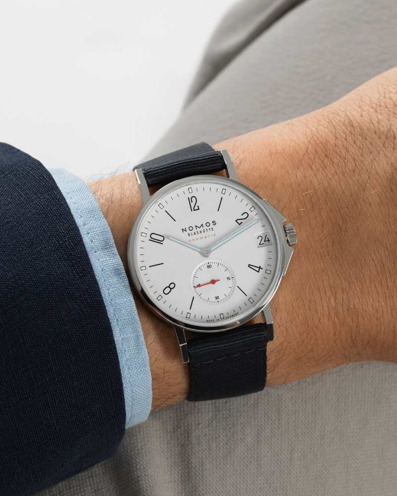 简约不等于单调,NOMOS 深谙其道。全新 Ahoi neomatik 38 date,以纯白表盘带来清新明亮的观感,为日常穿搭增添百搭选择。