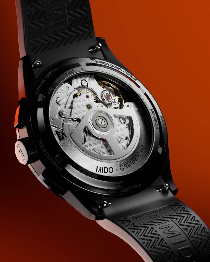 搭载 Caliber 60 机芯与 Nivachron™ 抗磁游丝,具备 60 小时动力储存与优异的抗干扰性能。防水深度达 100 米,陪伴佩戴者跨越四季环境。从透明底盖可见精细打磨与镂空自动盘,每一道工艺都承载情感的积累。MIDO 借此腕表,寄托着「为极限而生」的精神,也书写着爱情最真挚的篇章。