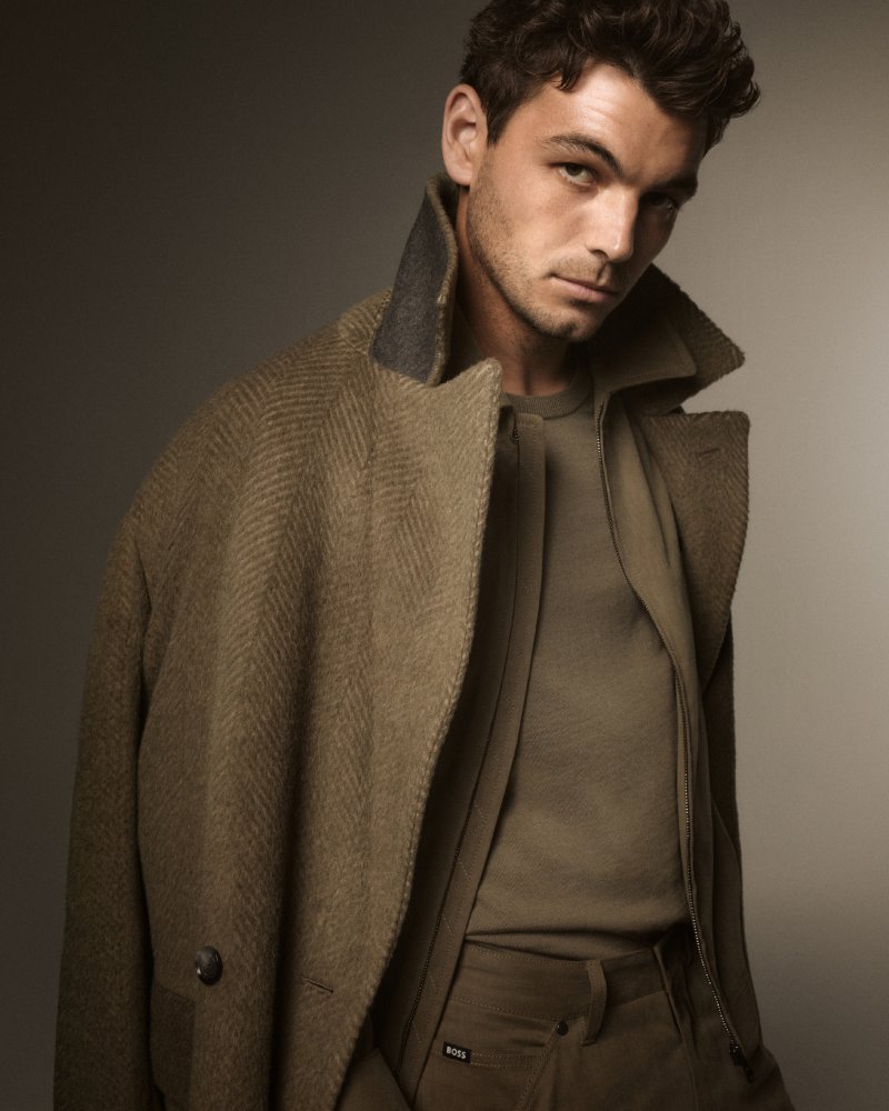 2025 秋冬系列以鼠尾草绿、烟灰色与浓郁的巧克力色为主调,彼此映衬出深沉而温暖的格调。此种色彩语言,不仅烘托出秋冬季的沉静氛围,更彰显 BOSS 一以贯之的现代优雅。与此同时,BOSS 腕表、珠宝与眼镜系列也在本次广告中闪耀亮相:S.COUPS、Fritz 与 Gray 展示了新一季的光学镜框与太阳眼镜,而 Gray 更携手荷兰模特 Parker Van Noord,诠释品牌即将推出的精致腕表与饰品。