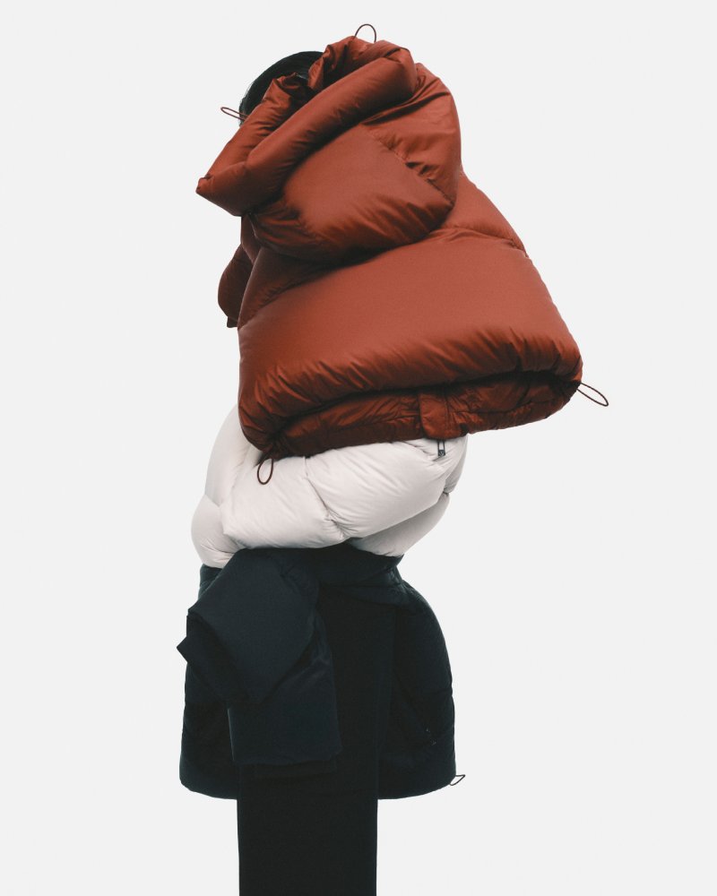材质选择亦彰显对季节的洞察。温润天然的织物与轻盈科技材质相互交织,既带来保暖舒适的触感,也保证造型的挺括与现代感。色彩上,低调的中性色调与深邃的黑色形成主基调,辅以几何感的图形元素点缀,为整体视觉注入鲜明张力。