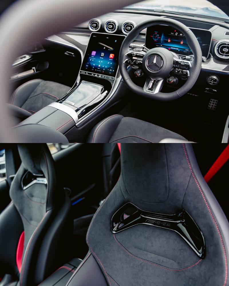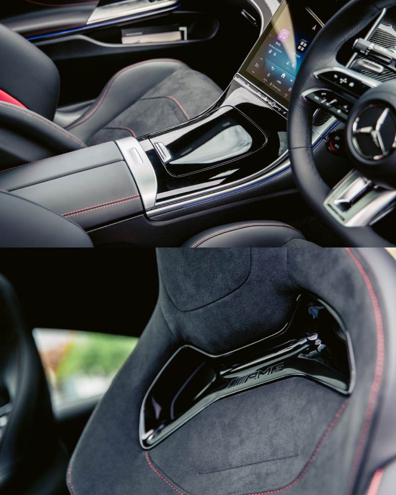 外观上,修长引擎盖与 “Shark Nose” 前脸勾勒出凌厉姿态,20 英寸 AMG Y 型轮毂、红色卡钳与宽体轮拱,尽显蓄势待发的力量感。车尾双圆形排气口与贯穿式 LED 尾灯相辅相成,呈现饱满而富有张力的视觉效果。