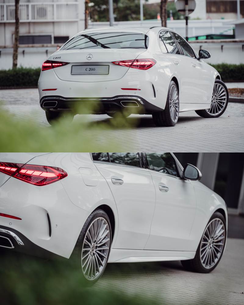 在外观上,C 200 AMG Line 以 AMG 运动化套件勾勒锐利线条:大尺寸进气口、扩散器造型后保险杠、双排气尾管与 19 英寸 AMG 多辐轮毂,赋予其不容忽视的运动姿态。