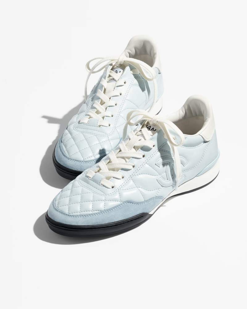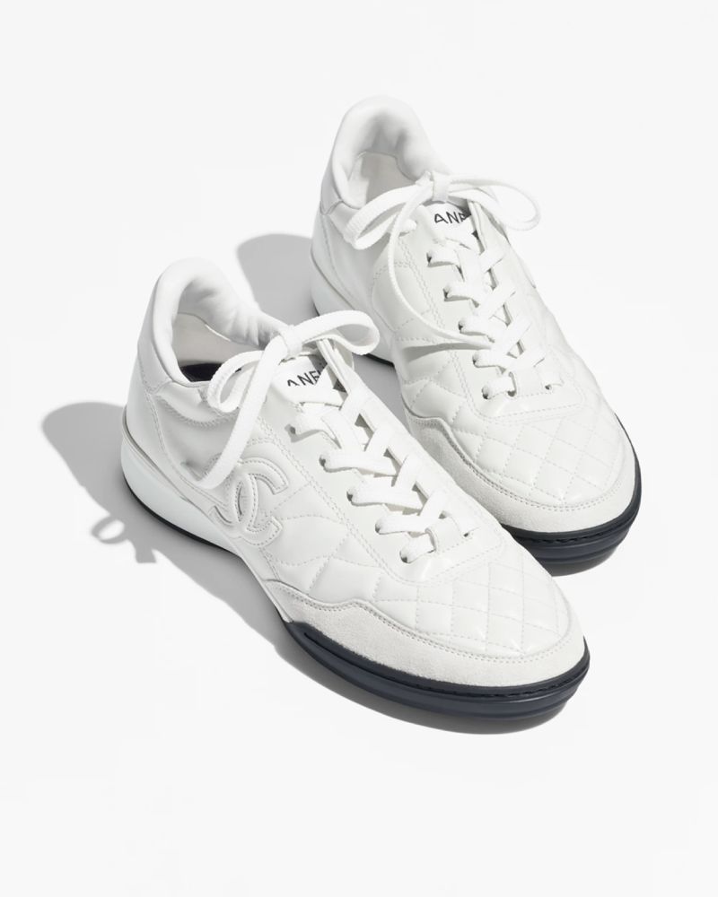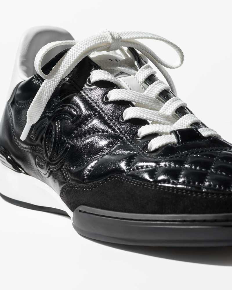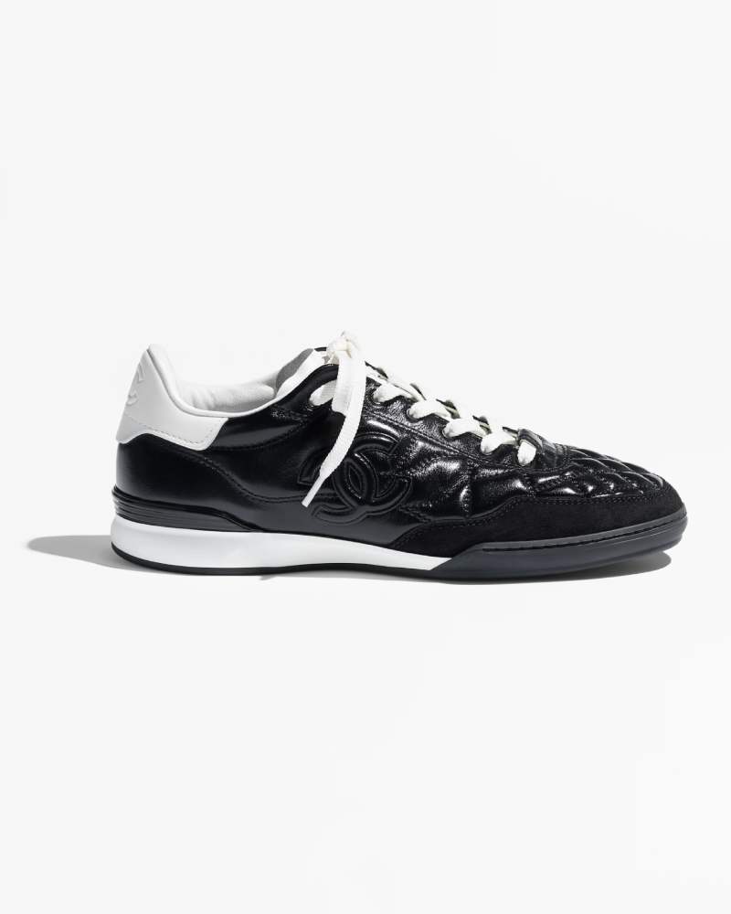 在 2025 春夏系列中,Chanel 再度以简约奢华演绎德训鞋风潮。全新 Trainer Shiny 以亮面小牛皮、光滑皮革与麂皮拼接而成,材质对比营造出层次与光泽感,低调中见精致。鞋型保持薄底利落廓形,不似厚底般夸张,却在细节与做工上体现了 Chanel 一贯的高级水准。