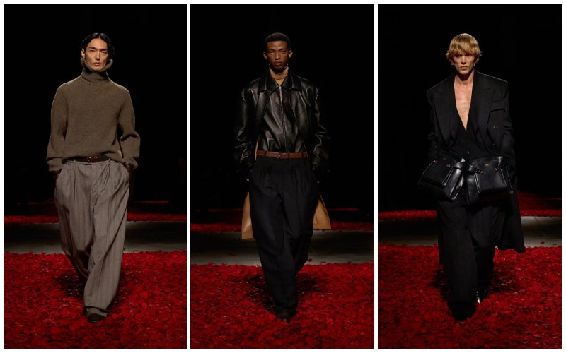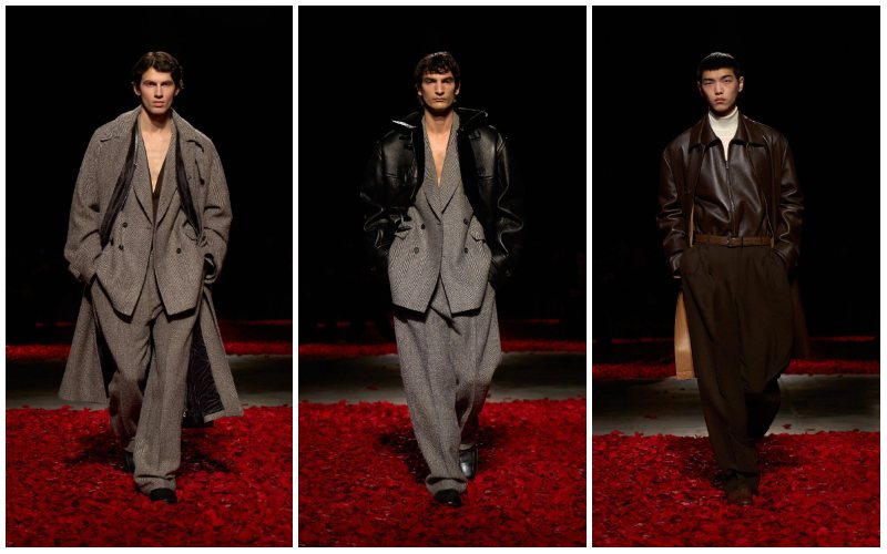 剪裁犀利却不失流动感,面料挺阔而又随身体律动,仿佛在呼吸。既有舞台上的表演性,又有日常的穿着性。Ferragamo 用这种二元表达回应了现代男性在情感与身份上的多重需求:既渴望个性张扬,也追求与内心的深度连接。这是一种极具当代性的男性浪漫,超越了单一的 “实用主义”。
