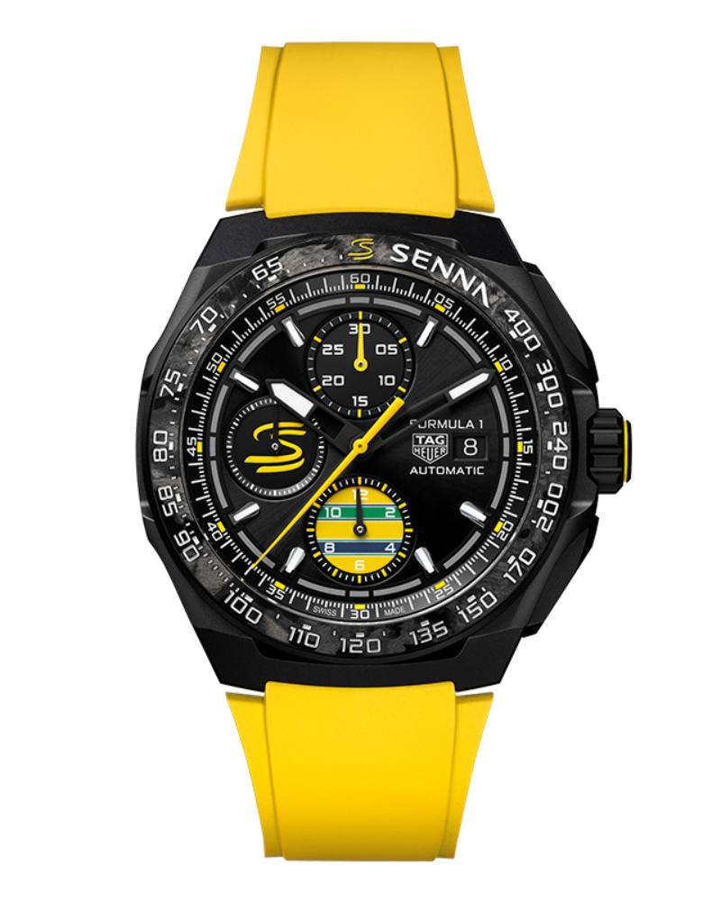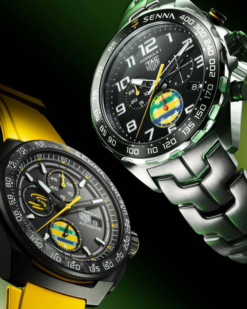 自 1988 年 TAG Heuer 与 Senna 结缘以来,双方的合作早已超越赞助与形象的层面,成为勇气、精准与极限挑战的象征。今年于巴西圣保罗大奖赛期间亮相的两款全新限量之作,再度重燃赛道荣耀。它们分别代表创新力量与经典风范 —— ​​前者以黑色钛金属表壳、碳纤维表圈与鲜黄细节彰显赛车灵魂;后者则以标志性的S/EL链带与复古风格,重现那个属于洗拿的黄金年代。