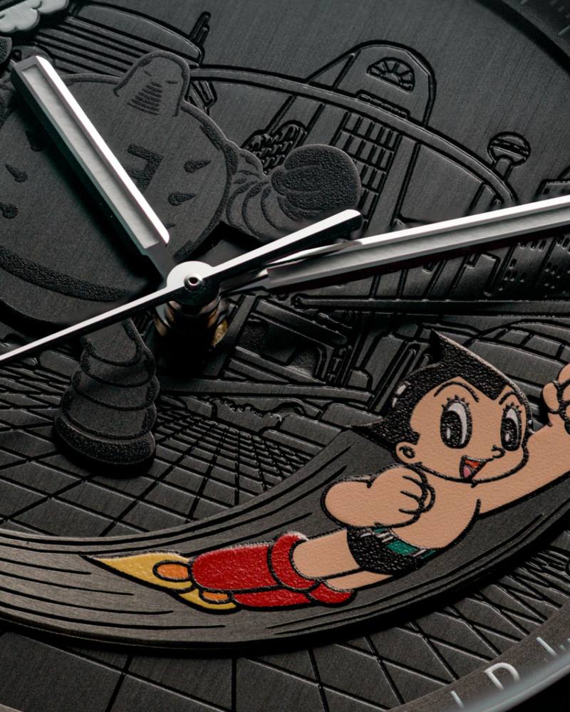 诞生于 1952 年的原子小金刚,是世代共同的记忆:他拥有机械之躯,却怀有人类的心。 Louis Erard 以此为核心,将这位动漫英雄化为立体浮雕,飞翔于雕刻细腻的未来都市之上。面盘不再只是时间的介面,而是一幅故事画面 —— 正义与黑暗、希望与力量,在金属光影间彼此交织。