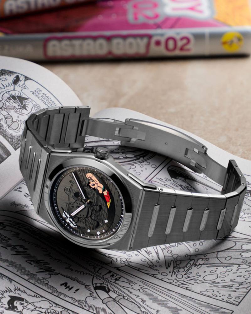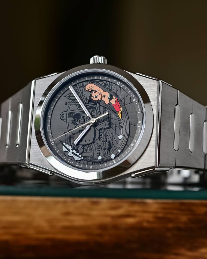 Astro Boy 特别版建构于品牌全新 2340 系列平台,为 Louis Erard 首款一体式链带运动腕表。 8.95mm 纤薄表身以钛金属打造,搭配历时三年研发的双材质链带(钛金属+不锈钢),细腻拉丝与抛光交错出极具未来感的层次。没有多余修饰,只有文化、故事与设计的共鸣。