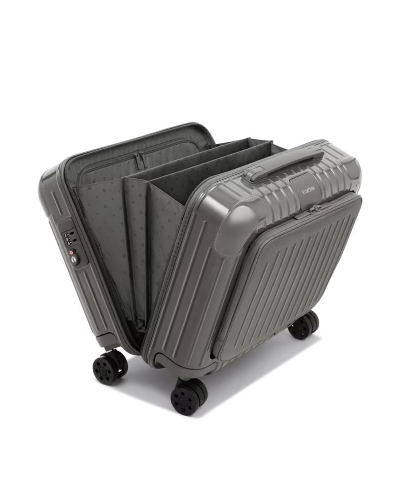 以聚碳酸酯打造,这款 RIMOWA 标志性的随身箱兼具轻盈与韧性,尤其适合商务与常旅行者。前方独立快速开启的拉链隔层可以轻松收纳 13-14 吋笔电、护照与关键文件,不需开箱即可迅速取物。简洁的黑灰配色延续 RIMOWA 的专业气场,而内部布局严谨、收纳分层清晰,轻松整理随身衣物、充电器与文件,让你从会议室到机场都依旧从容。