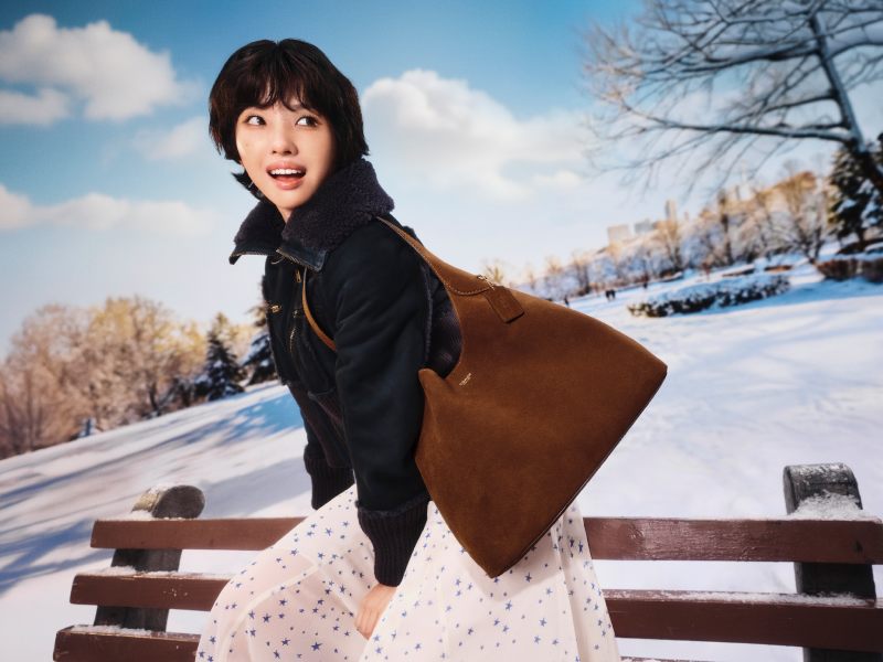 木村光希(Kōki)携全新 Tabby Shoulder Bag 26 软粒面皮革款,畅游雪地,尽显时尚风采。