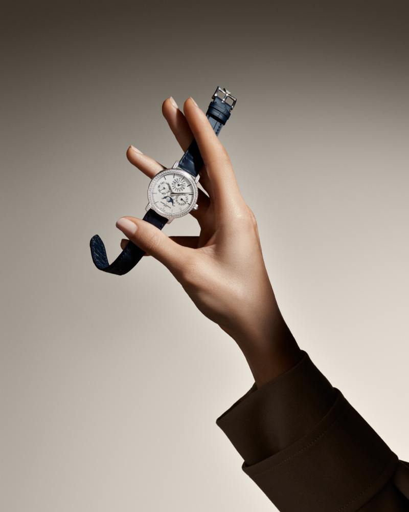 3 枚 Traditionnelle Perpetual Calendar Ultra-Thin 万年历超薄,不只是计时器 —— 它们是时间之术的低语,是世代匠人耐心与审美的叠加。无论偏爱温润玫瑰金、雅致白金,或是低调奢华的镶钻款,这一系列都将复杂功能以最优雅的姿态佩戴于日常。细看页面中机芯与表径比例的每一处细节,你会发现这既是历史的回响,也是当代优雅的新注脚。