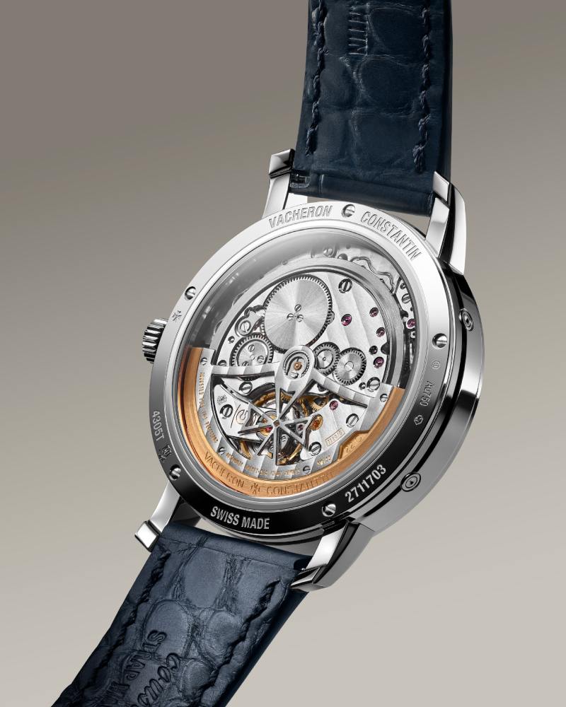 3 款全新 Traditionnelle Perpetual Calendar Ultra-Thin(36.5mm) 表盘均采用银色蛋白石般的银质磨砂底(silver-toned opaline),力求刻度、矿亮与读时清晰之间的优雅平衡;背透蓝宝石可见经手工修饰的桥板、日内瓦波纹与以马耳他十字镂空的 22K 金摆陀,彰显制表传统与现代制造的融合。此外,凡 2025 年出产之作品均饰有品牌 270 周年纪念徽章,且全部通过日内瓦印记认证,确证源自日内瓦高制的工艺传承。