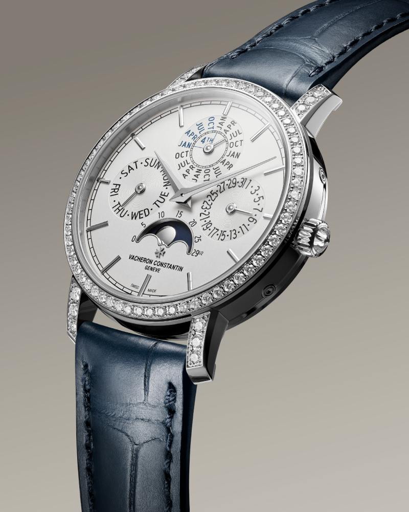Traditionnelle Perpetual Calendar Ultra-Thin Ref. 4305T/000G – H135:白金镶钻款:表圈、表耳顶部及表冠以 76+1 颗明亮式钻石点缀(表扣另镶 17 颗细钻),在银白色调与闪耀之间保有极简节制的华贵感。