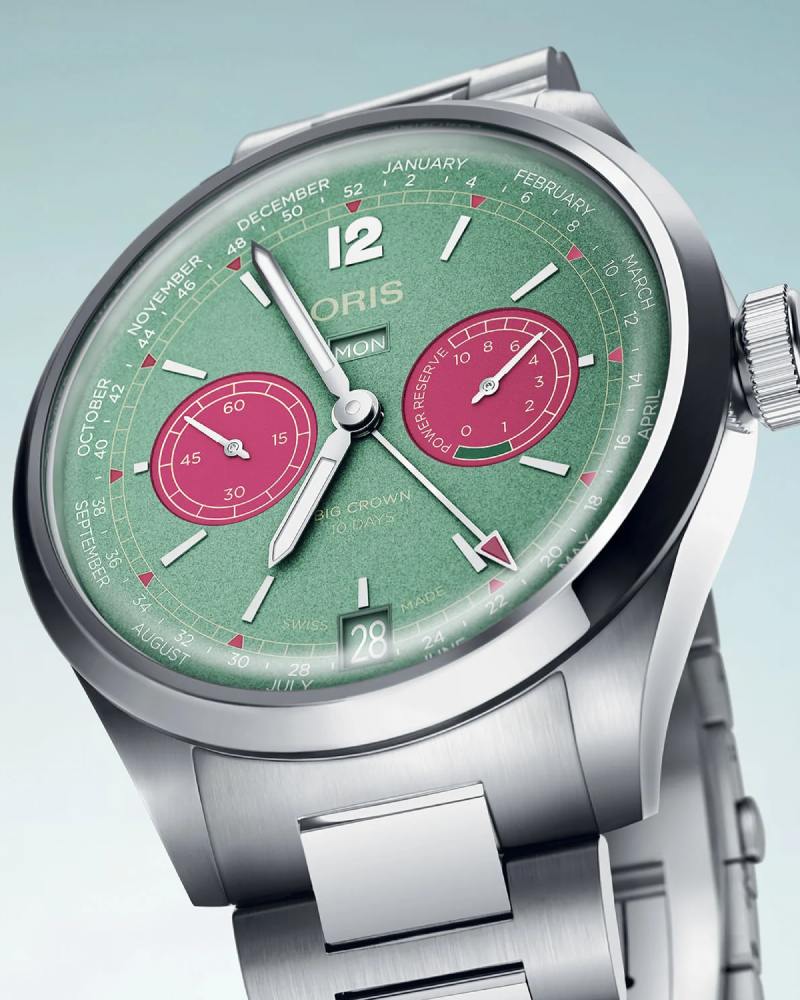 Oris 把 Big Crown 的经典外形与自制 Calibre 113 深度结合,形成「工具表中的复杂表达」。Calibre 113 为手上链机芯,强调 10 天长动力与非线性动力储存显示,同时整合 52 周商业年历(business calendar)功能,实用与罕见兼备。43mm 表壳保持 Big Crown 的辨识度,而相对亲民的定价与高耐用性,使它既能吸引怀旧表友,也能满足想要高性能机芯的入门藏家;K’ 编看重的是这款 Oris Big Crown 的清新配色,以及把独到功能做成日常可用、且延续品牌精神的能力,绝对值得推荐!
