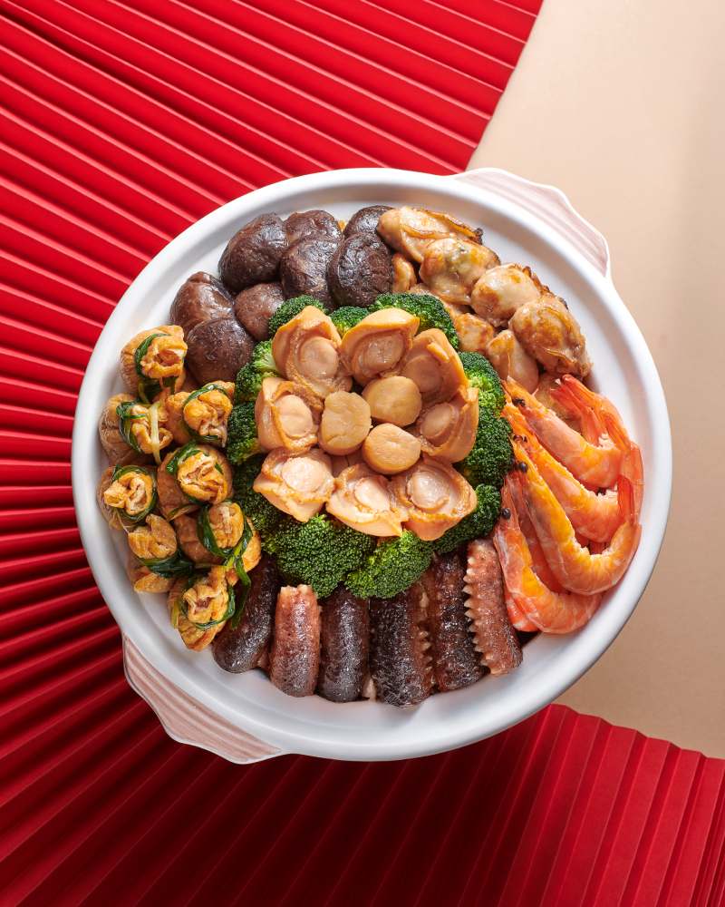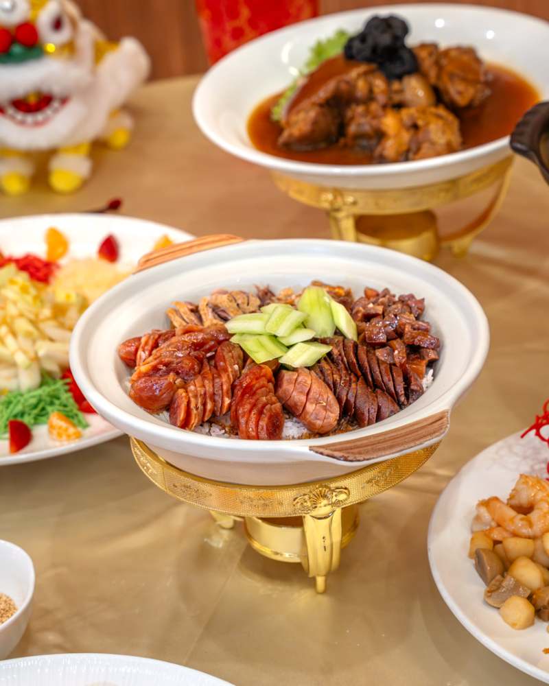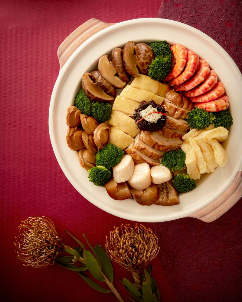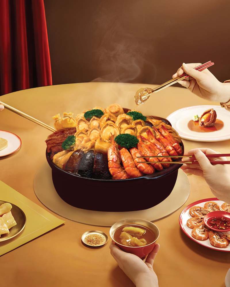 六款捞生选择从 RM98 起,涵盖龙虾、鱼子酱、双头鲍鱼与软壳蟹,象征步步高升。招牌盆菜同样不容错过,精选澳洲六头鲍、日本干贝与花胶等珍稀食材,六人份 RM1,688 起,适合大家庭围桌共享,延续最传统的新春热闹氛围。