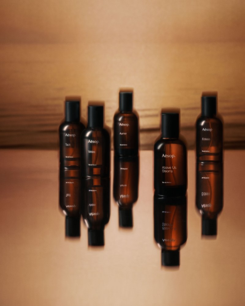 Aesop 的香水家族(如 Tacit、Virēre RM630;Aurner、Above Us、Steorra、Eidesis RM780)同样以非传统元素为特征:木本、草本或辛香被重新编排成细腻而意外的主线,每一款像一段短小的故事,随佩戴者在城市中漫游,留下既熟悉又难以复制的气息轨迹。