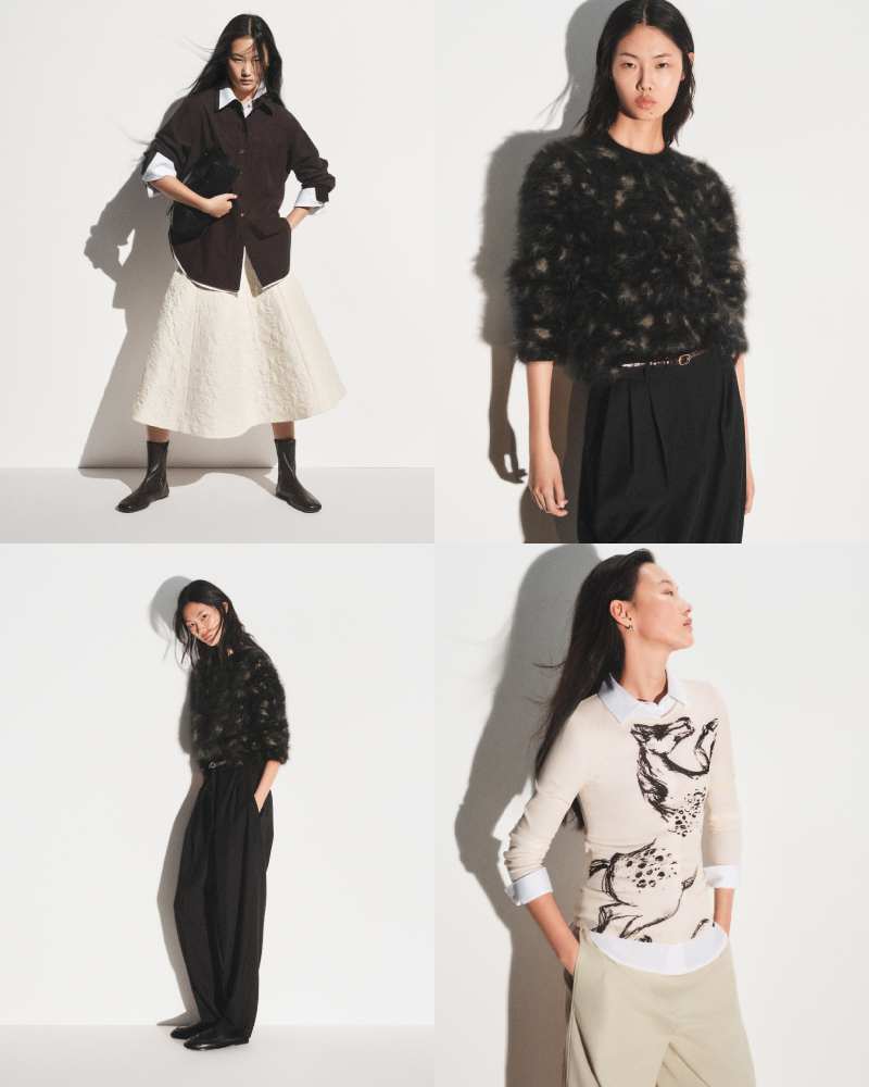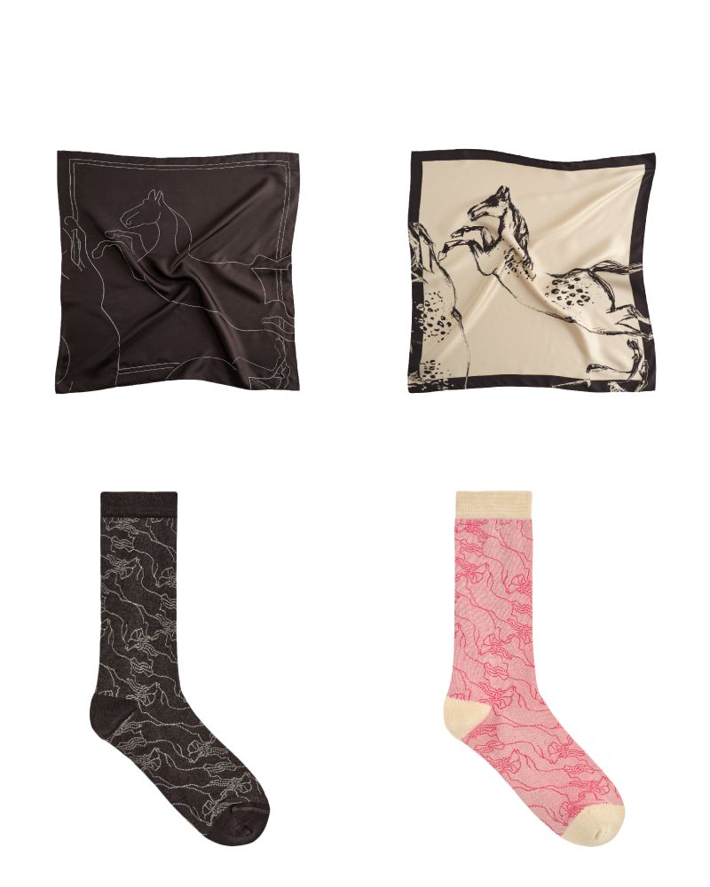 灵感源自马匹所蕴含的生命力与节奏感,设计团队将 “速度” 转译为材质与触感的变化:丝巾、棉质配饰与柔软羊毛层叠出轻盈却有分量的穿着体验。线性元素在运动中展开,于克制之中建立起线与面的平衡,低调却不失仪式感,成为对新年的静谧致意。