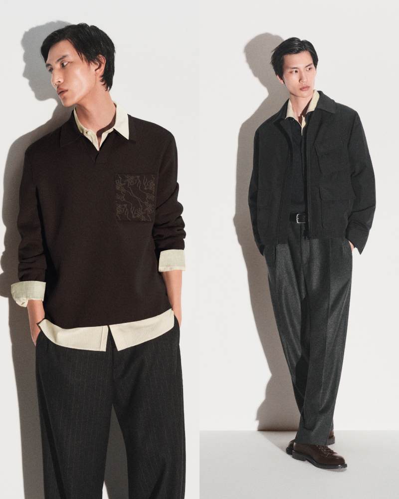 在设计语言上,系列巧妙融合传统节庆意涵与现代极简美学。成衣以明亮的春季色调搭配沉稳中性色,灵感来自自然元素之间的和谐共存。重点单品包括色泽饱满的红色羊毛针织、流畅廓形的成套搭配,以及可自由组合的日常款式,让节日着装回归轻松与实穿,而非刻意张扬。