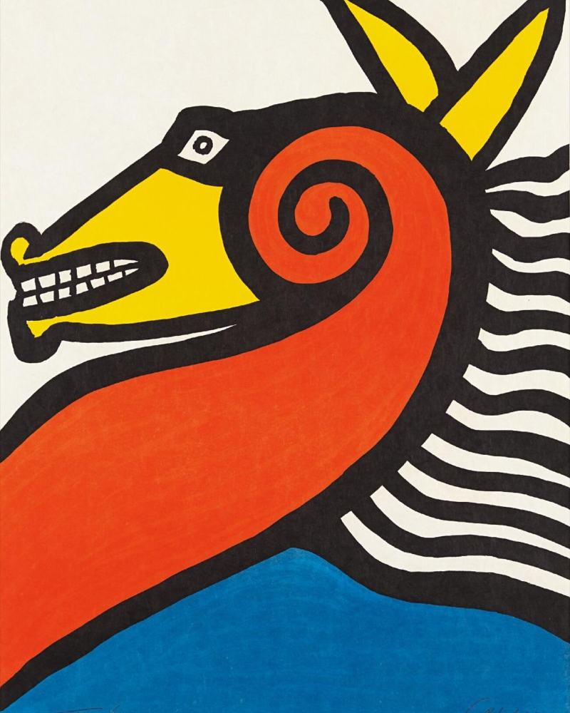 被誉为 “动态雕塑之父” 的 Alexander Calder ,在《马》中以红、黄、蓝三原色构建出高度概括的造型。形式被极度简化,却保留了最本质的动感,成为现代艺术史中不可忽视的一笔。