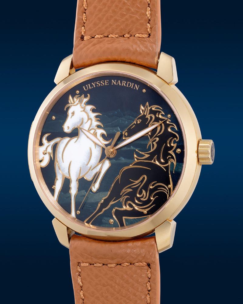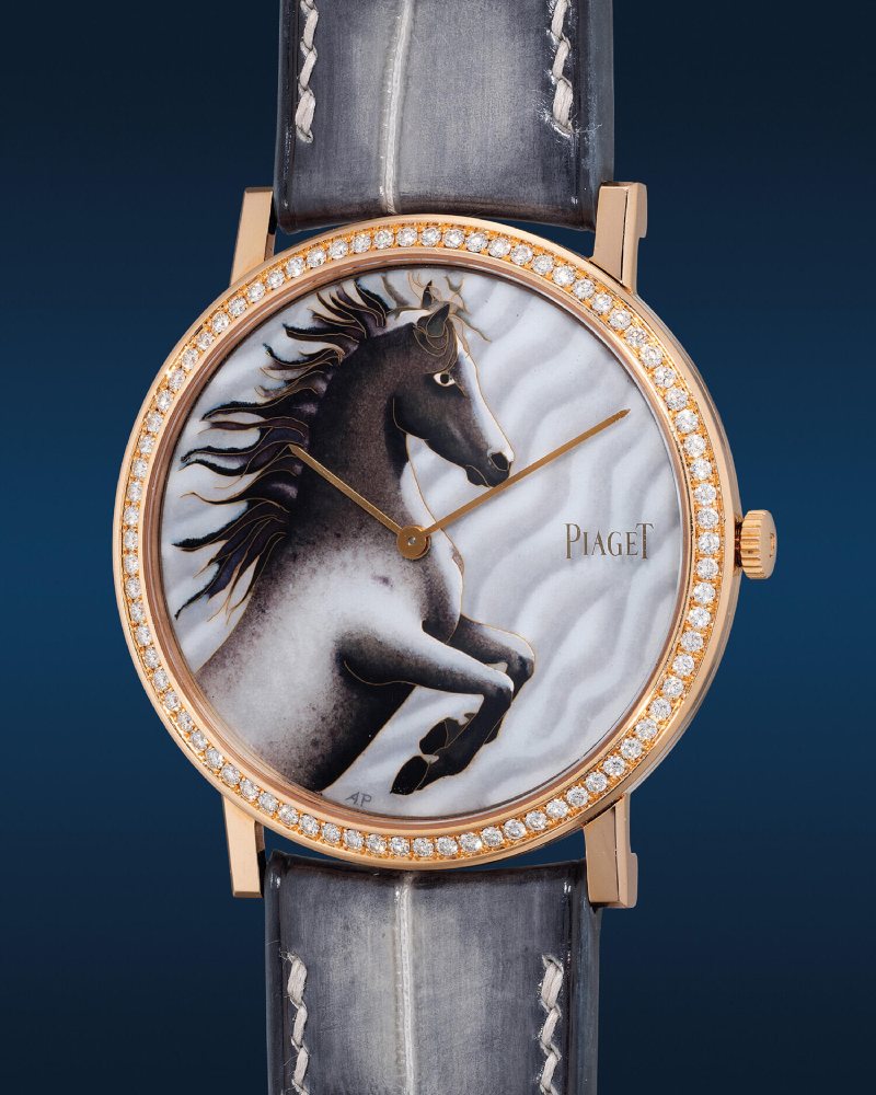 Piaget 将目光投向象征速度与耐力的汗血宝马。Altiplano 38mm 生肖马腕表,由珐琅艺术大师 Anita Porchet 以掐丝珐琅精工绘制,骏马跃然而出,姿态矫健而不失优雅,在方寸之间凝结出时间与文化的双重价值。