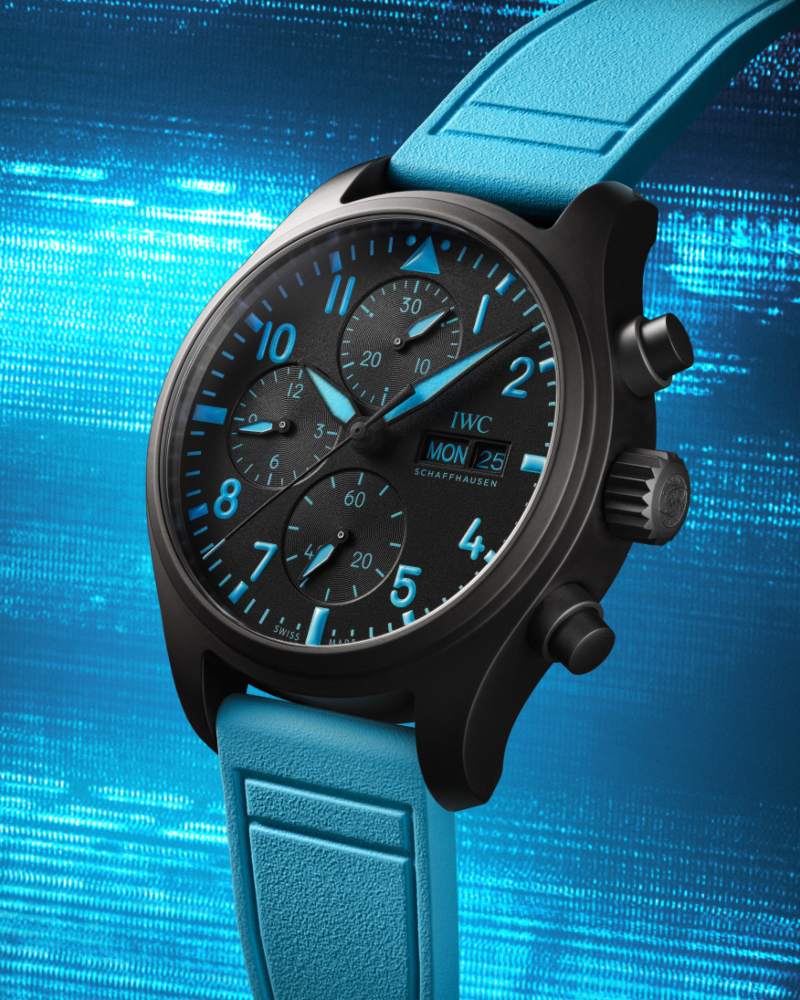 蓝色,在 George Russell 的职业生涯中象征冷静与进攻并存的双重特质,也成为腕表最醒目的视觉符号。PILOT’S WATCH CHRONOGRAPH 41 搭载 69380 型机芯;PILOT’S WATCH AUTOMATIC 41 则配备 32112 型长动力机芯,功能与材质选择均紧扣 F1 对可靠性与耐久性的极端要求。这不只是 “车手联名”,而是将竞技精神直接嵌入制表结构之中。