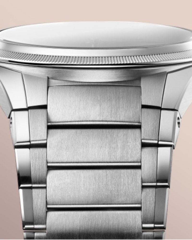 36mm 精钢表壳延续系列对比例的精准掌控,抛光与缎面交替处理,使整体气质更显内敛而高级。镀铑 18K 金立体时标与镂空三角指针在确保清晰读时的同时,维持了表盘的纯粹构图,体现品牌对视觉秩序的严谨理解。