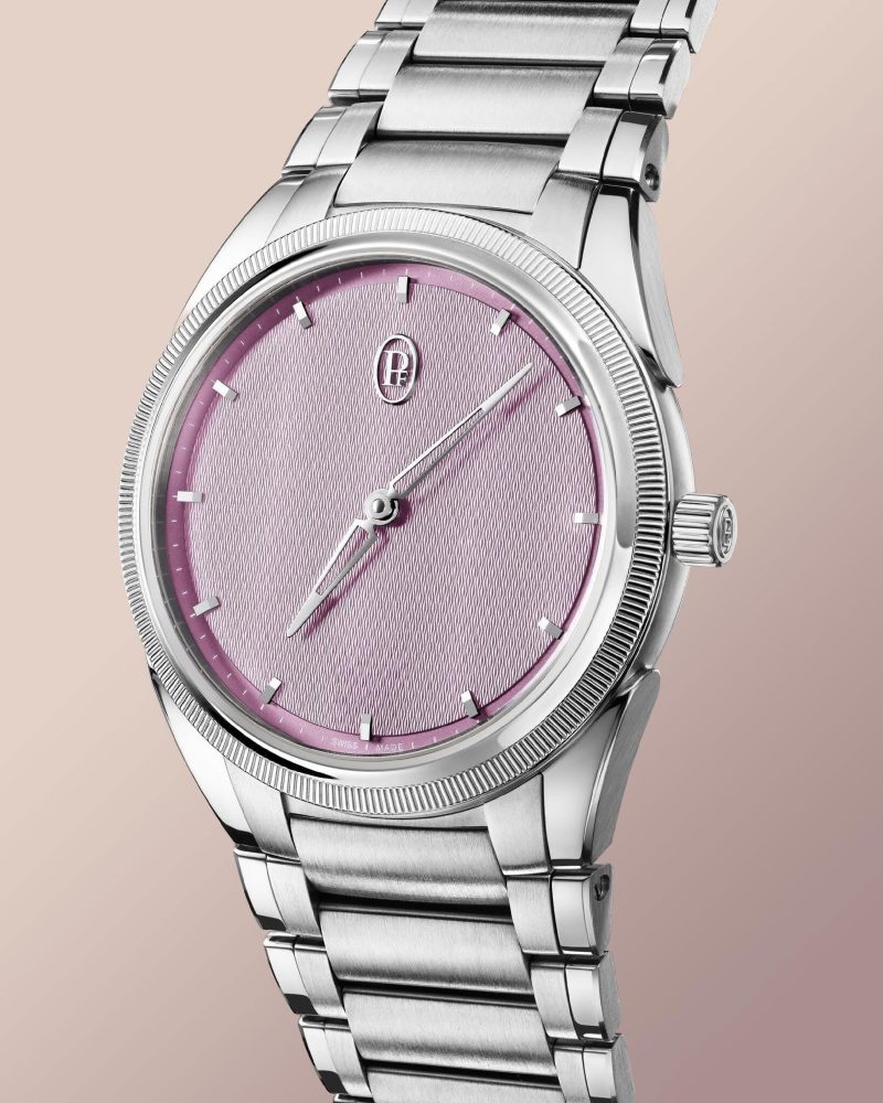 在极简与细节之间,Parmigiani Fleurier 以 Tonda PF Automatic 36 Alta Rosa 再次诠释何为 “克制的优雅”。这枚新作以柔和玫瑰色表盘为视觉核心,搭配细腻的金纹玑镂纹,在光影流转间呈现出微妙层次,仿佛一件静谧而富有呼吸感的建筑立面。