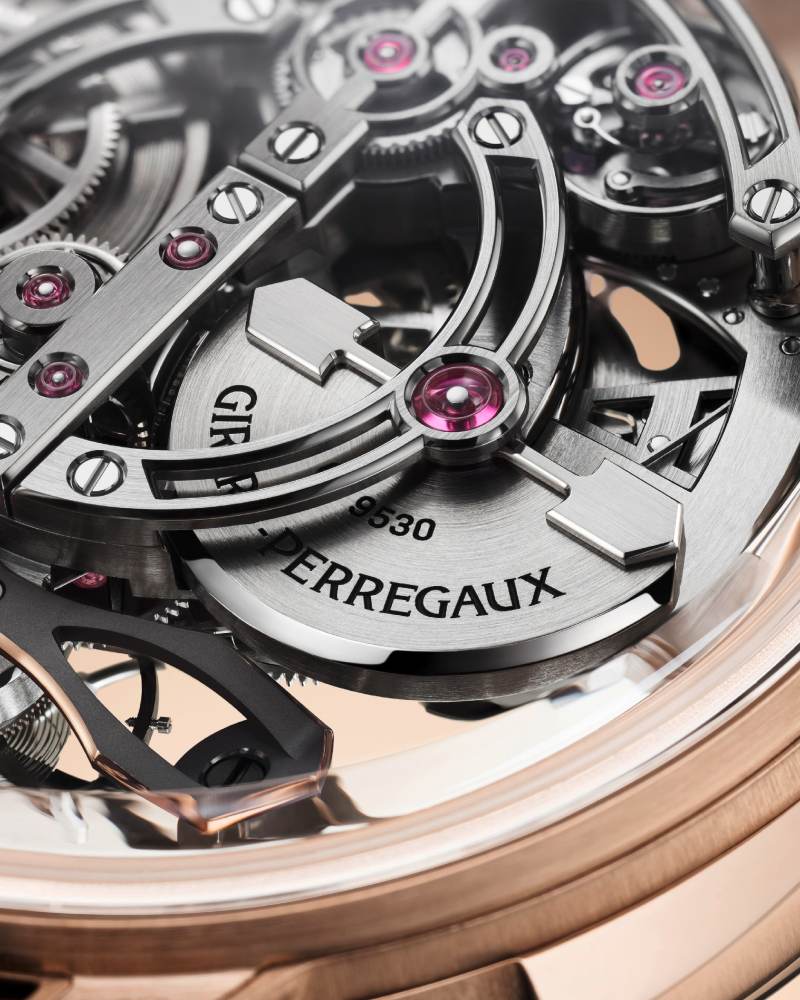当视觉美学与听觉艺术交汇,Girard-Perregaux Minute Repeater Flying Bridges,将品牌百年制表底蕴推向全新高度。新作搭载全新自制 GP9530 机芯,将三问报时这一传统复杂功能,以更纯净、更精准的声学表现重新诠释。
