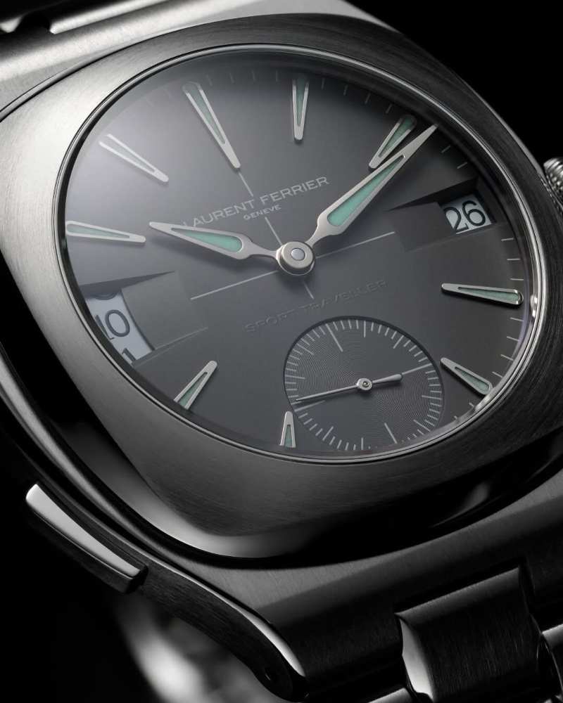 Laurent Ferrier 的 Sport Traveller Slate Grey 延续品牌一贯的优雅内核,在旅行表的实用性与正装气质之间取得巧妙平衡。乳白色表盘搭配灰粉色细节,温润克制;家乡时间、日期与小秒针布局清晰而不喧哗,展现一种低调却极具修养的运动风格。