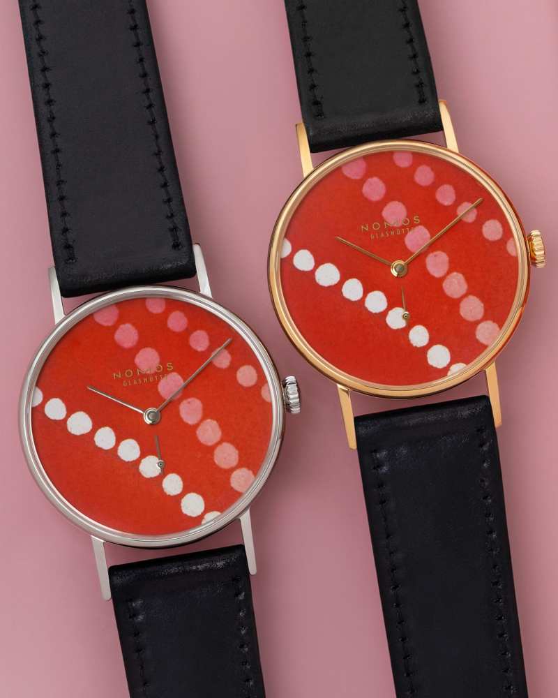 NOMOS 的 Twice Unique U1 以艺术图案重塑经典表盘,令腕表更接近时装配件与个人表达。来自纺织设计语境的视觉碎片被重新切割、重新置入,不同表壳材质之间也因此产生了鲜明的风格差异,独特而富有当代感。