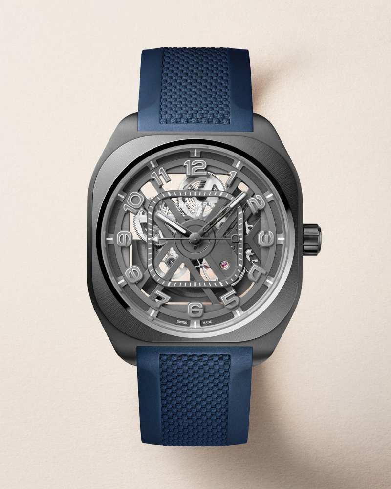 Hermès 以 H08 Squelette 再次诠释其独有的几何美学。圆角方形表壳与镂空机芯彼此呼应,令 “方中有圆、圆中见方” 的设计语言更加清晰。黑色 DLC 钛金属与陶瓷表圈组合,令整体气质更显锐利而现代,既是运动腕表,也是结构艺术。